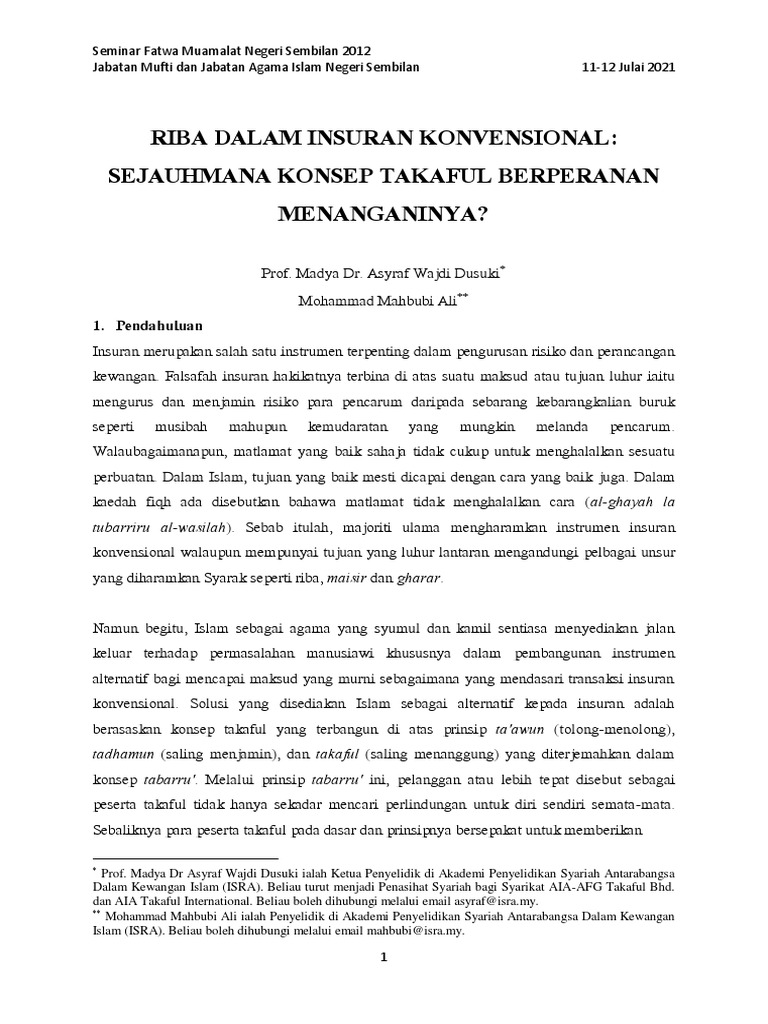 Pdf on apr 1 2018 asyraf wajdi dusuki and others published riba dalam insurans konvensional. Telah memutuskan bahasa insurans konvensional itu Haram kerana dalam. Mengikut fakta pada 15 Jun 1972 Majlis Fatwa Kebangsaan Malaysia.